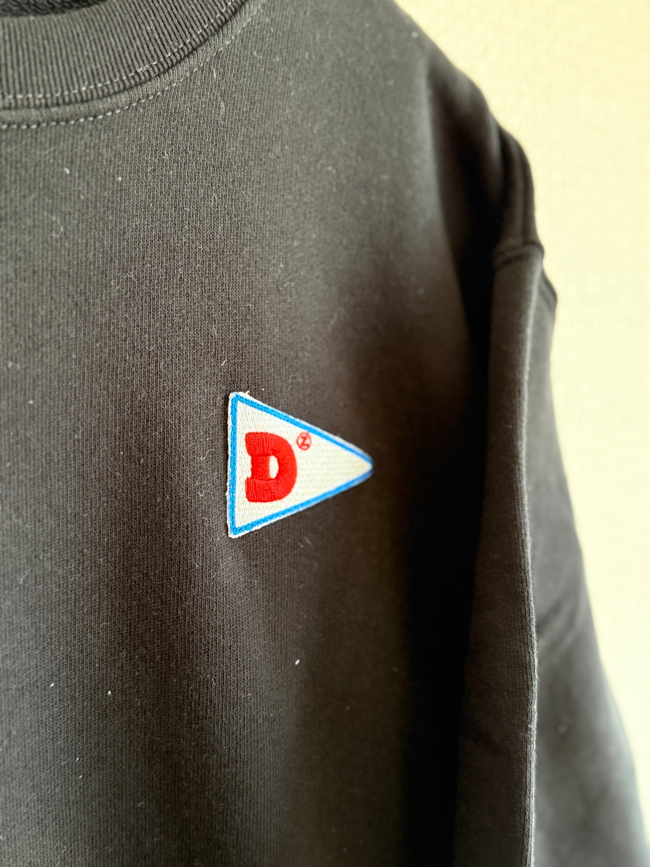 胸元にあしらったロゴデザインは、フラッグの刺繍ワッペン。